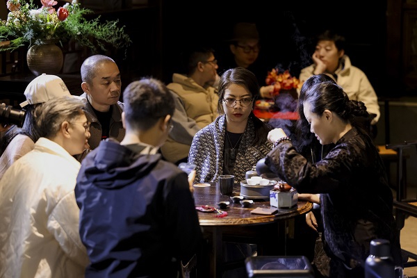 茶席之上,五方茶韵荟萃交融:潮汕工夫茶精巧细致,老北京大碗茶豪爽敞亮,西式骨瓷优雅精致,韩国茶礼庄重恭敬,与海上茶席的特色风情相得益彰。现场评弹小调悠扬,长嘴壶表演壶嘴如龙吐水,《红楼梦》宝黛知心、宝玉妙玉互动等经典场景轮番演绎,戏里喝茶、茶中赏戏,沉浸式体验让在场者直呼惊艳。“戏台在眼前,茶盏在手边,背后是豫园飞檐,这感觉太奇妙了!”一位青年茶人的感叹,道出了这场茶戏盛宴的独特魅力。