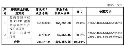另外,4.06亿元募资投入“研发中心建设项目”,此项目旨在升级硅基OLED微显示驱动芯片及微显示屏等新型显示技术。此项目具体包括“新一代硅基OLED驱动芯片技术研发项目”及“基于叠层白光OLED的高亮硅基微显示器件研发项目”。